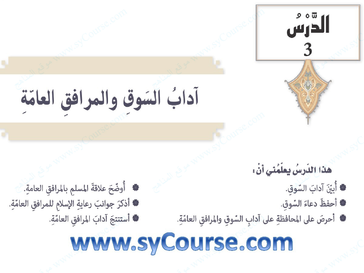 درس آداب السوق والمرافق العامة الصف التاسع تربية اسلامية الفصل الثالث 2018 2019 المناهج الإماراتية