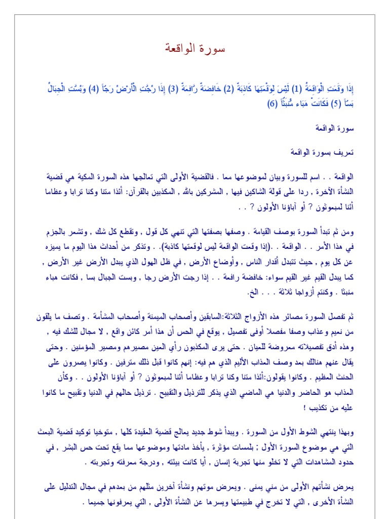 اذا وقعت الواقعة ليس لوقعتها كاذبة خافضة رافعة. إذا وقعت الواقعة أي قامت القيامة والمراد النفخة الأخيرة. سورة الواقعة سورة 56 عدد آياتها 96 بسم الله الرحمن الرحيم. إذا وقعت الواقعة ليس لوقعتها كاذبة خافضة رافعة إذا رجت الأرض رجا وبست الجبال بسا فكانت هباء منبثا قوله تعالى. ثم تختم السورة بتوكيد الخبر الصادق وتسبيح الله الخالق إن هذا لهو حق اليقين فسبح باسم ربك العظيم فيلتئم المطلع والختام أكمل التئام إذا وقعت الواقعة ليس لوقعتها كاذبة خافضة رافعة إذا رجت الأرض رجا وبست الجبال بسا فكانت.