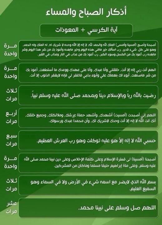 مذكرات تعليمية أذكار الصباح واذكار المساء مكتوبة وكاملة Facebook