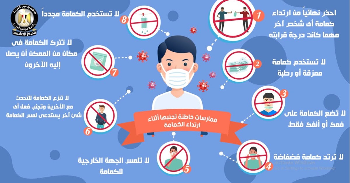 ما لا يجب فعله عند ارتداء كمامة نصائح الصحة العالمية للوقاية من كورونا إنفوجراف اليوم السابع