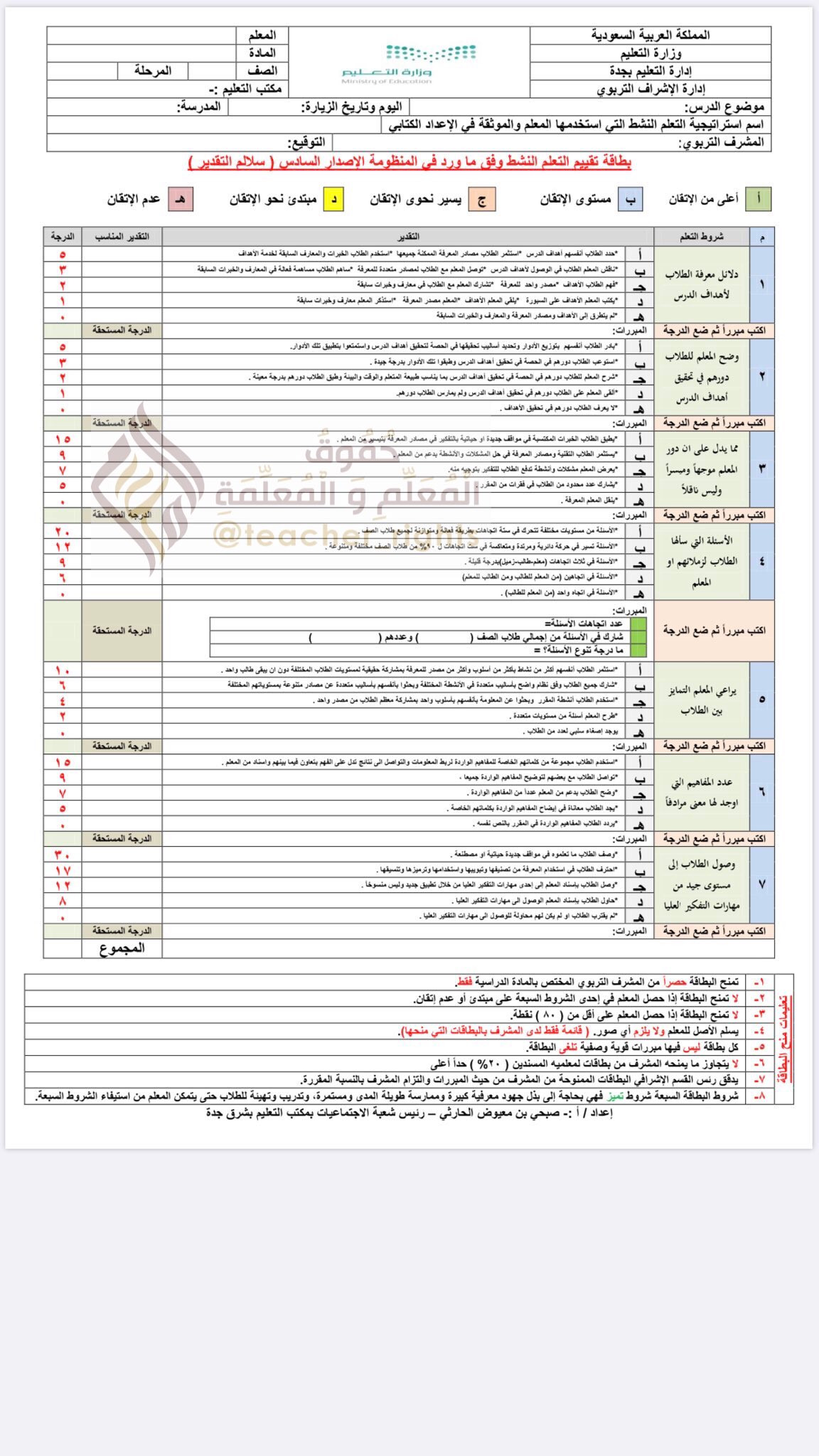 حقوق المعلم والمعلمة وواجباتهما A Twitter استمارة بطاقة التعلم النشط جاهزة للطباعة