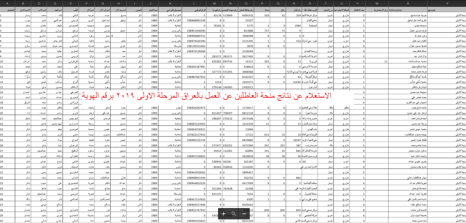 اسماء منحة العاطلين عن العمل 2019 2020.