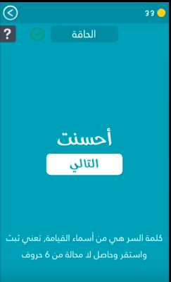 اجابة هى من اسماء القيامة تعنى تبث واستقر وحاصل لا محالة من 6 حروف من لعبة كلمة السر 2 صقور الإبدآع