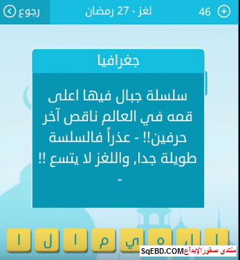 جواب سؤال سلسلة جبال فيها اعلى قمه في العالم 27 رمضان من لعبة رشفة رمضانية صقور الإبدآع