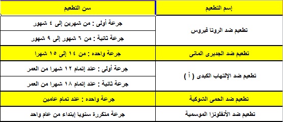 تطعيمات للأطفال والأولاد وزارة الصحه