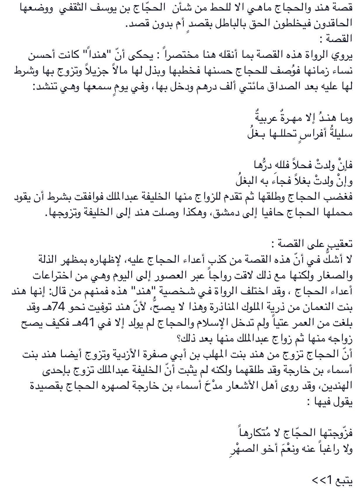 مناور سليمان Ar Twitter قصة هند والحجاج الثقفي ماهي الا قصة كذب للحط من شأن الحج اج بن يوسف الثقفي والخليفة الاموي عبدالملك بن مروان ووضعها الحاقدون Https T Co Vzeyaa3xkv