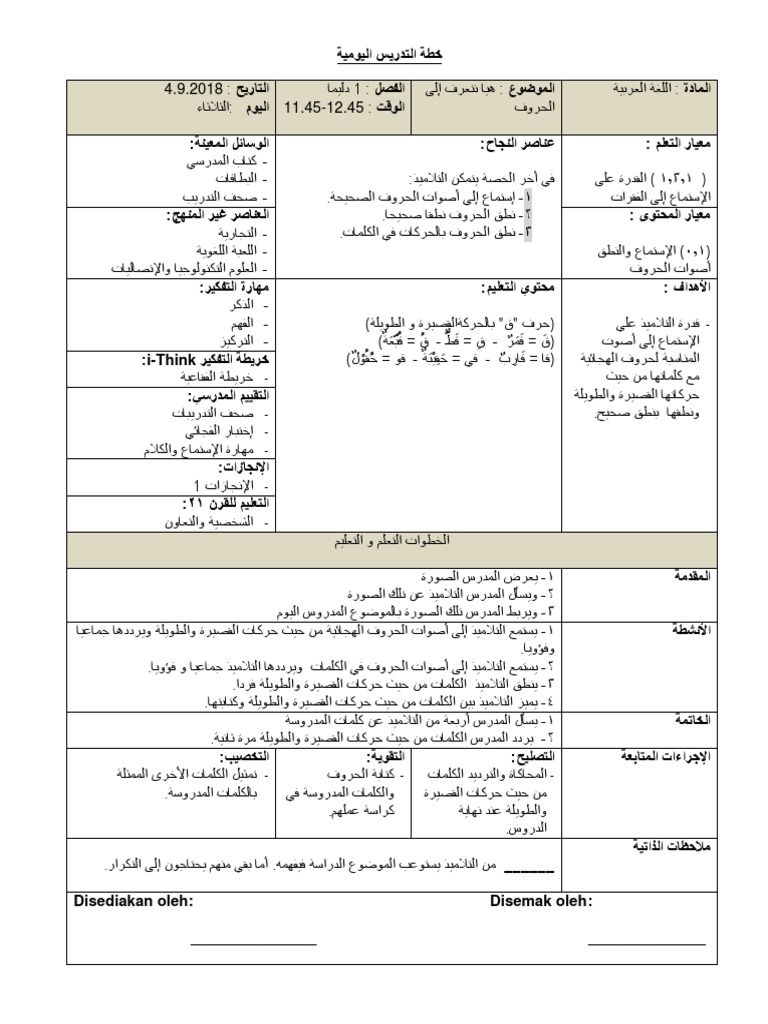 الحروف الهجائية بالحركات القصيرة والطويلة Doc