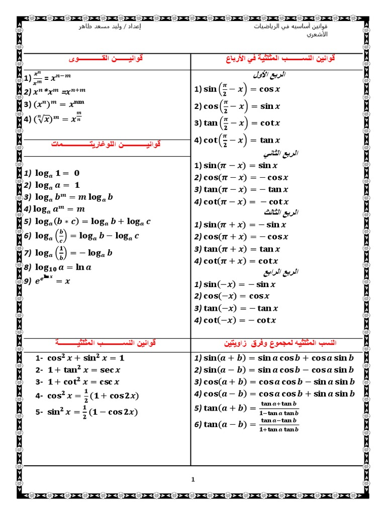 االمتطابقات و المعادلات المثلثية I Love Math