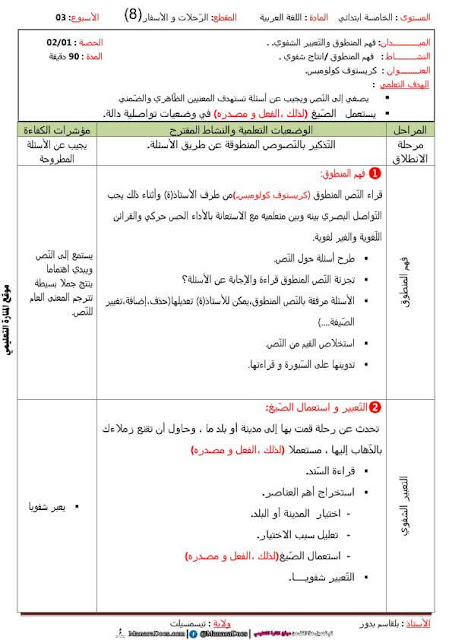 مذكرات السنة الخامسة 5 ابتدائي في اللغة العربية المقطع الثامن الاسبوع الثالث الادماج