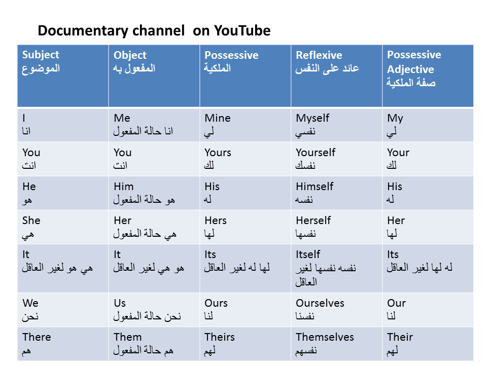 شرح قواعد اللغة الانجليزية الضمائر Youtube