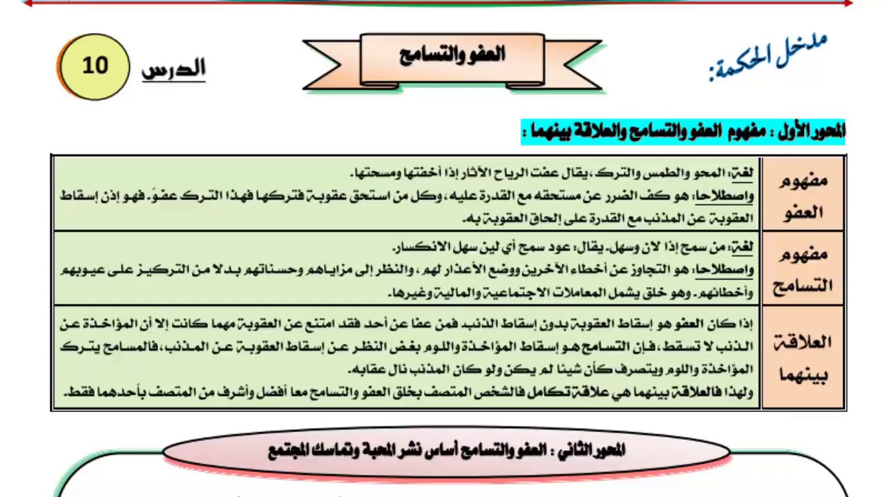 درس العفو و التسامح التربية الإسلامية الأولى بكالوريا