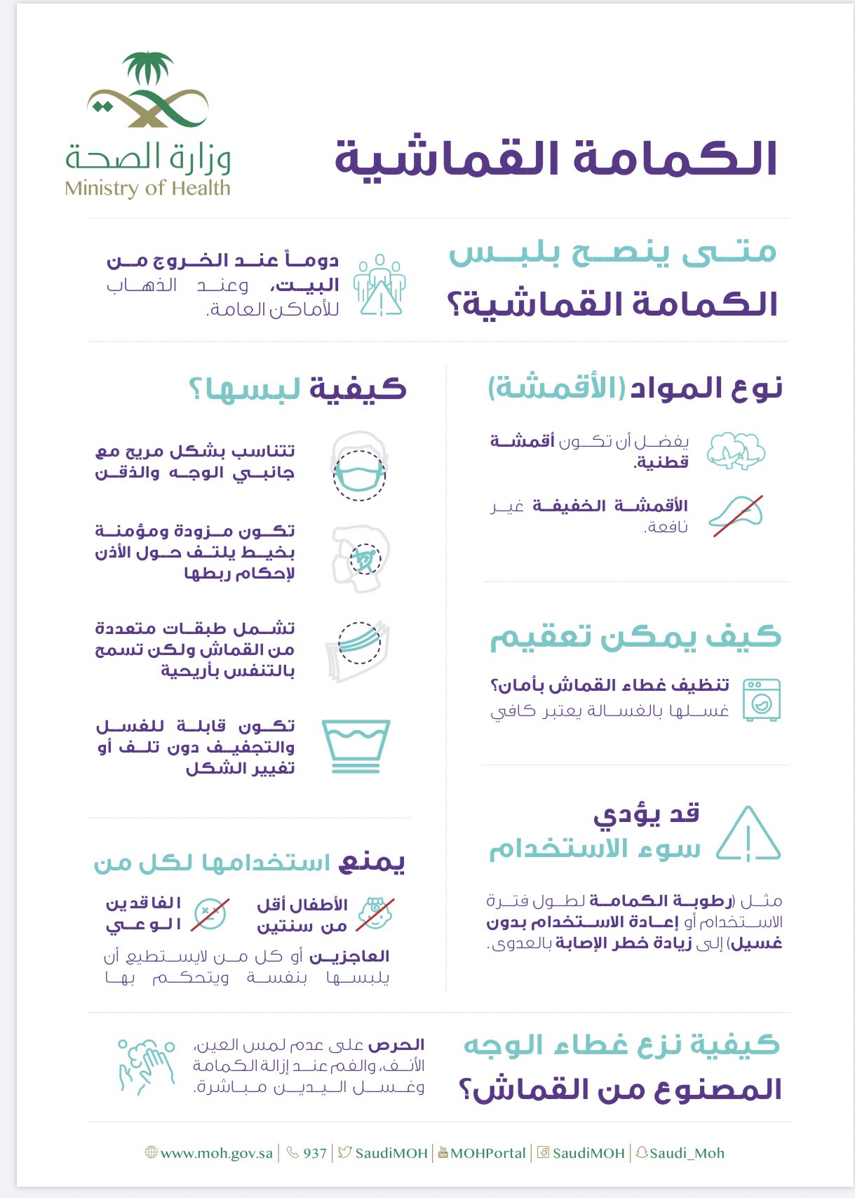 توصيات مهمة عند ارتداء الكمامة القماشية Ministry Of Health وزارة الصحة السعودية Facebook