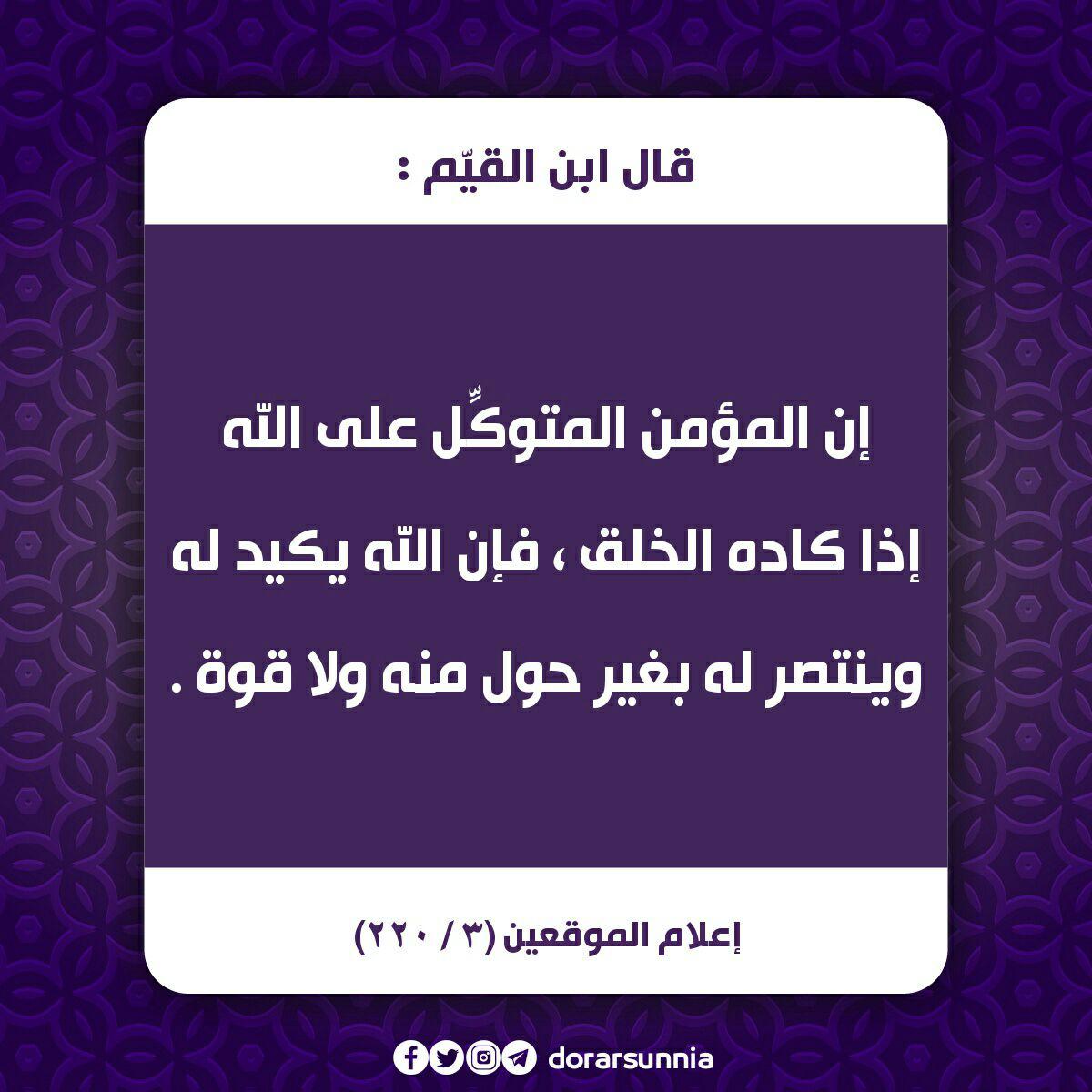 ابوبكر الضريبي En Twitter ابن القيم إن المؤمن المتوكل على الله إذا كاده الخلق فإن الله يكيد له وينتصر له بغير حول منه ولا قو ة Https T Co Gtx4oib6e6