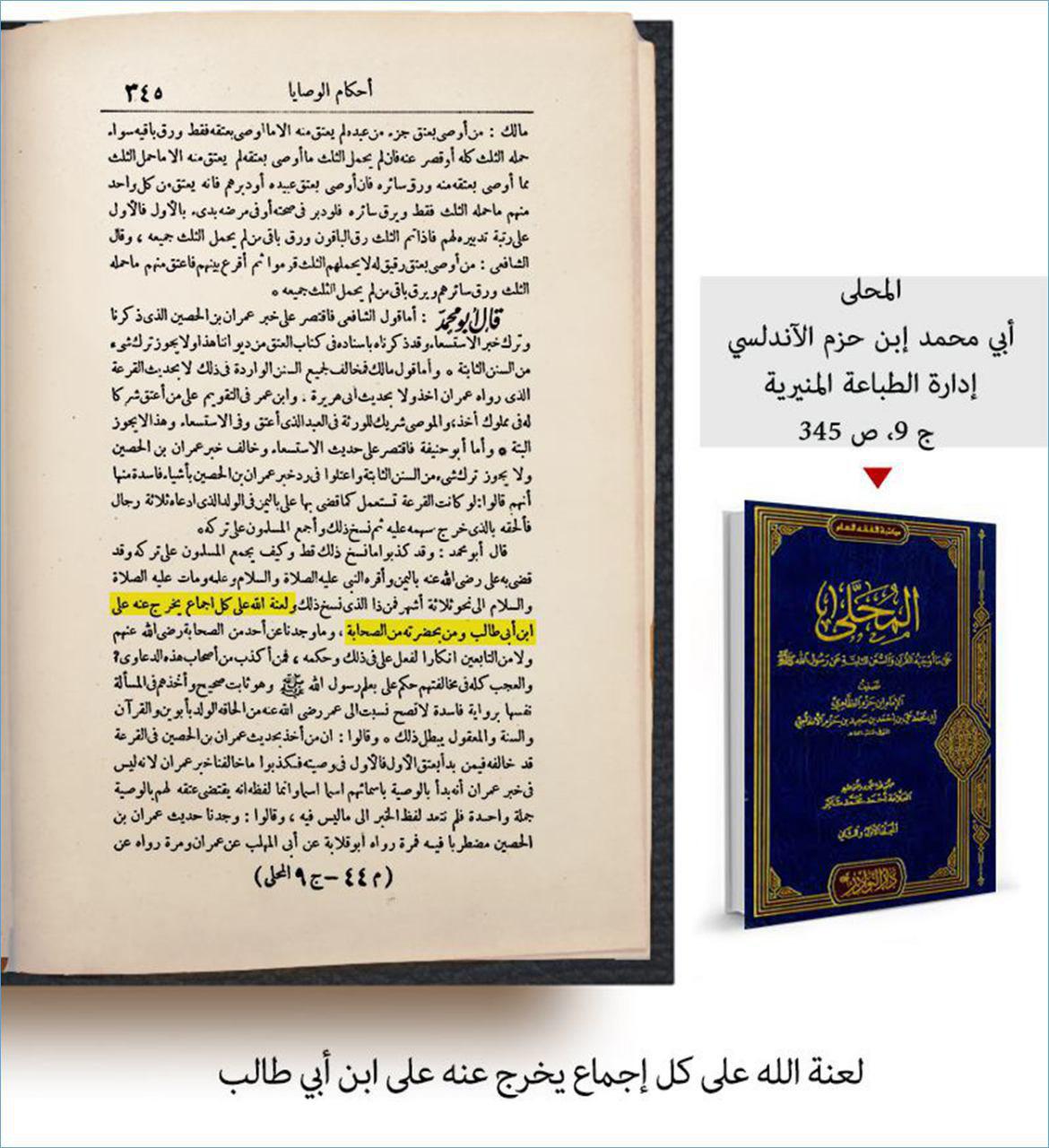 ابن حزم يلعن كل اجماع لم يكن علي بن ابي طالب داخل به منتدى الكفيل