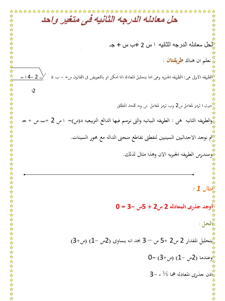 حل معادله الدرجه الثانيه فى نتغير واحد