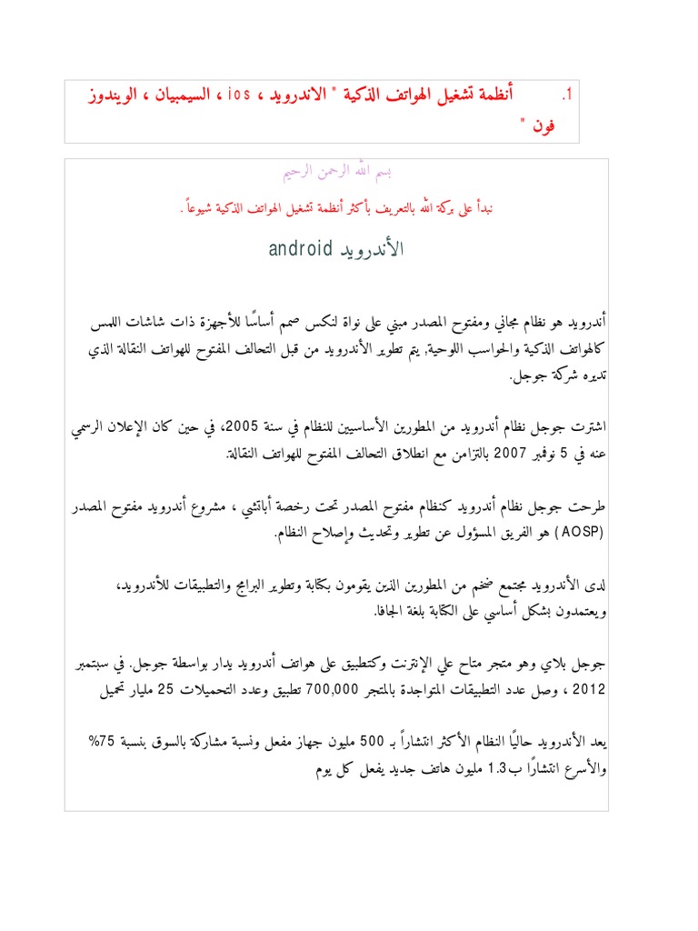 بحث عن انظمة تشغيل الاجهزة الذكية وأنواعها موسوعة