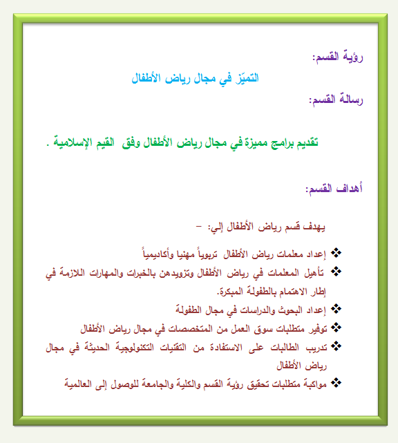 College Of Education رؤية ورسالة القسم