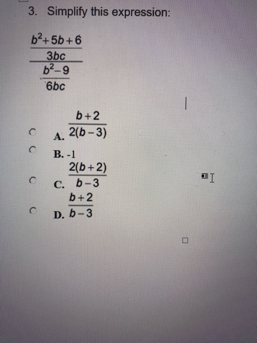 Solved 3 Simplify This Expression B2 5b 6 3bc B 9 6bc Chegg Com