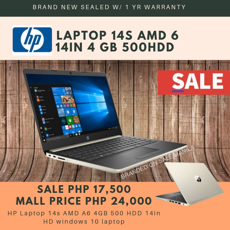 Bos Hp Laptop 14s Amd A6 4gb 500 Hdd 14in Hd Windows 10 Laptop Shopee Philippines