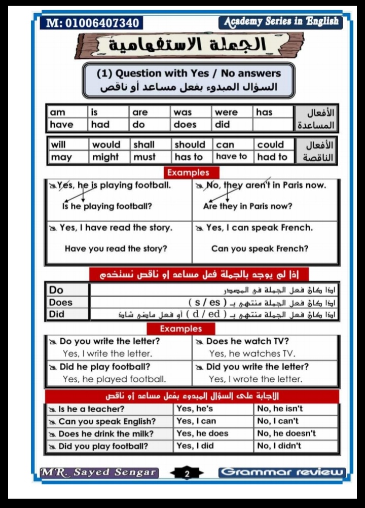 مذكرة رائعة لتبسيط قواعد اللغه الانجليزيه فى 20 ورقة فقط Pdf لمستر سيد