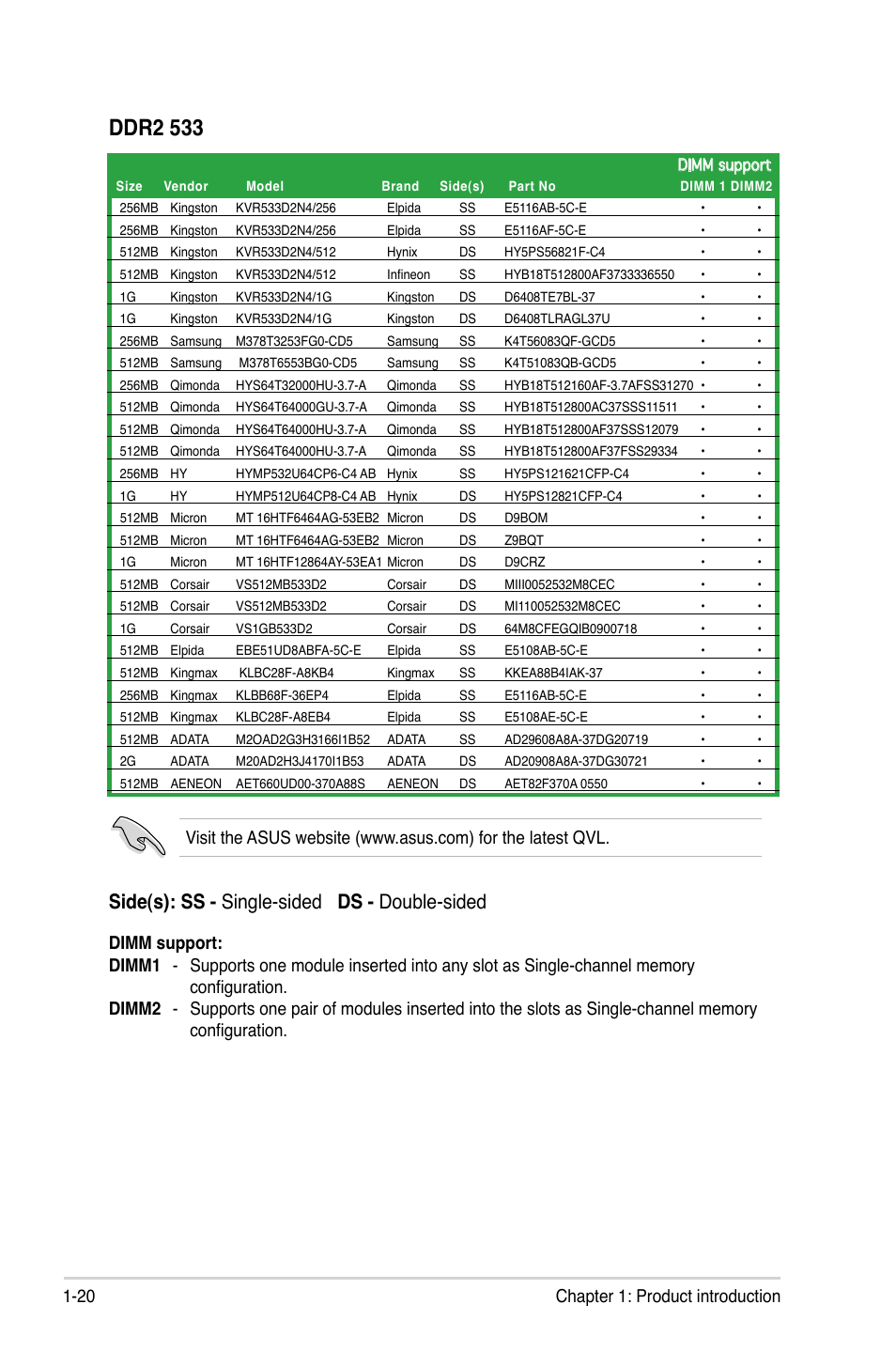 Ddr2 533 Side S Ss Single Sided Ds Double Sided 20 Chapter 1 Product Introduction Asus P5sd2 Vm User Manual Page 32 94 Original Mode