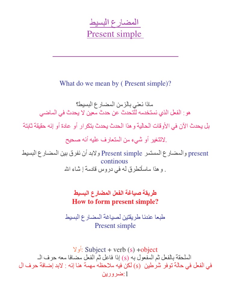 فولفولي شرح قاعدة المضارع البسيط في اللغة الانجليزية بالتفصيل Simple Present Arabic Words Words Kata Beach Phuket